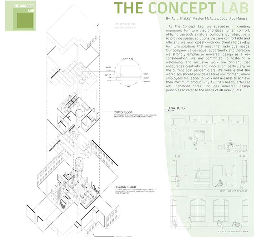 Students are expected to synthesize knowledge gained throughout the program. Solutions must have a strong research foundation and demonstrate comprehensive and integrative design thinking.