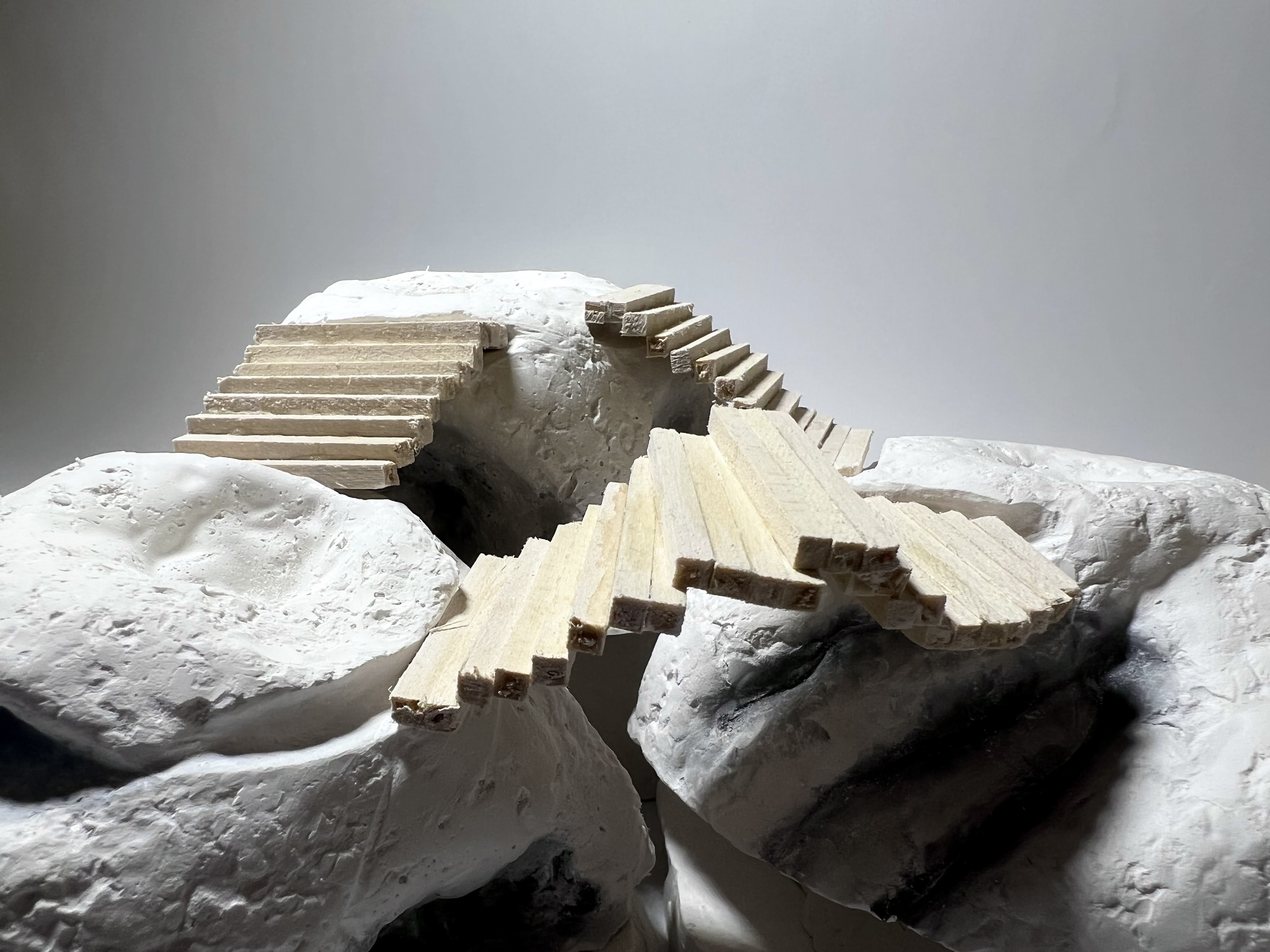 The design of the ground plane is a depiction of society's pessimistic view of the elderly. The decaying apples are used as a motif since apples are powerful fruits that symbolize life. Once an apple begins to soften and bruise, many will choose not to eat it, much like how the elderly often become a burden to the younger demographic. Staircases were chosen since they are what older people have the most difficulty using in terms of mobility. Furthermore, the design includes elements of what the elderly are most sensitive to in architectural work, allowing visitors to emphasize the difficulties associated with navigating an ageing body.